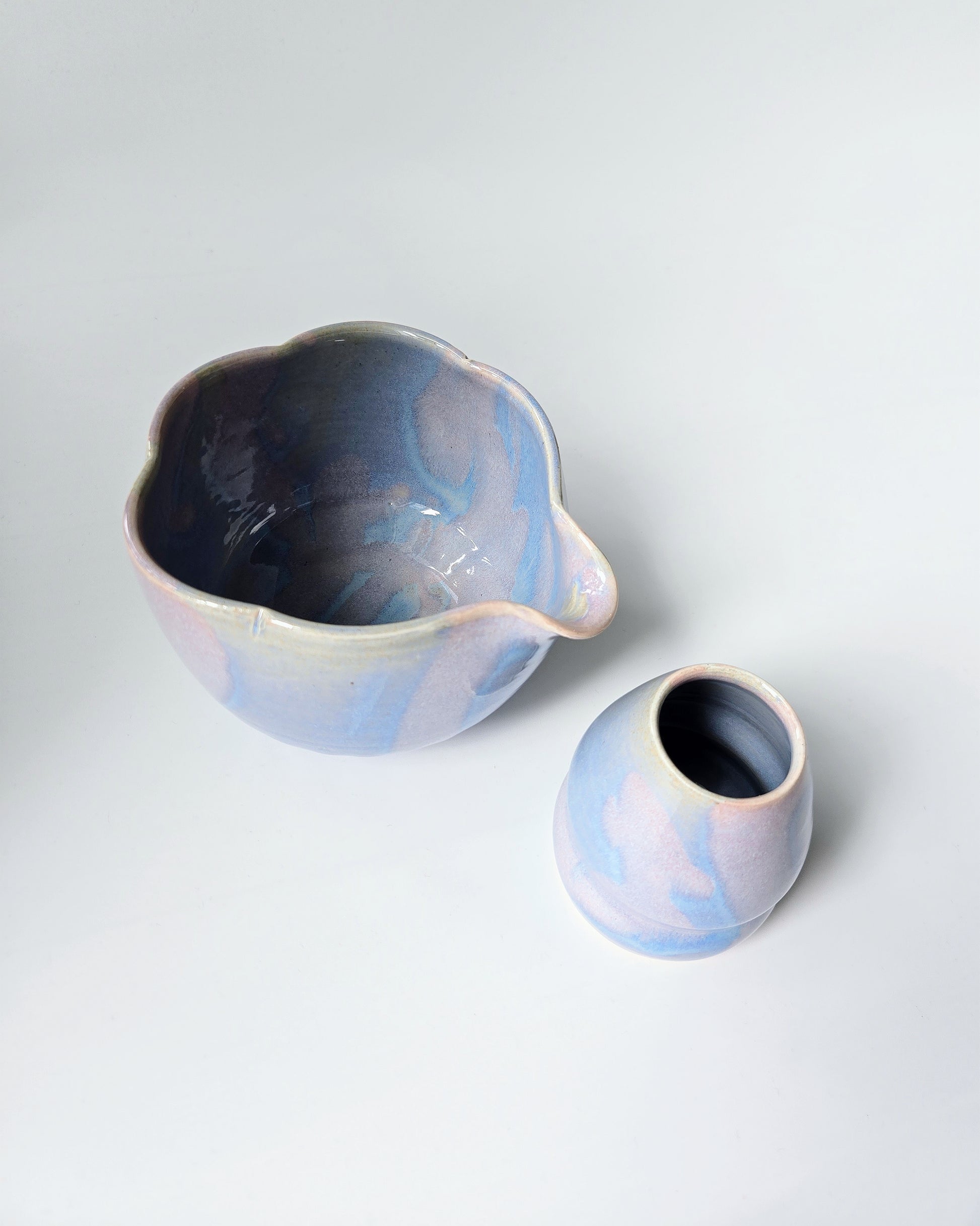 Daydream | white stoneware with sky blue glaze and lilac streaks