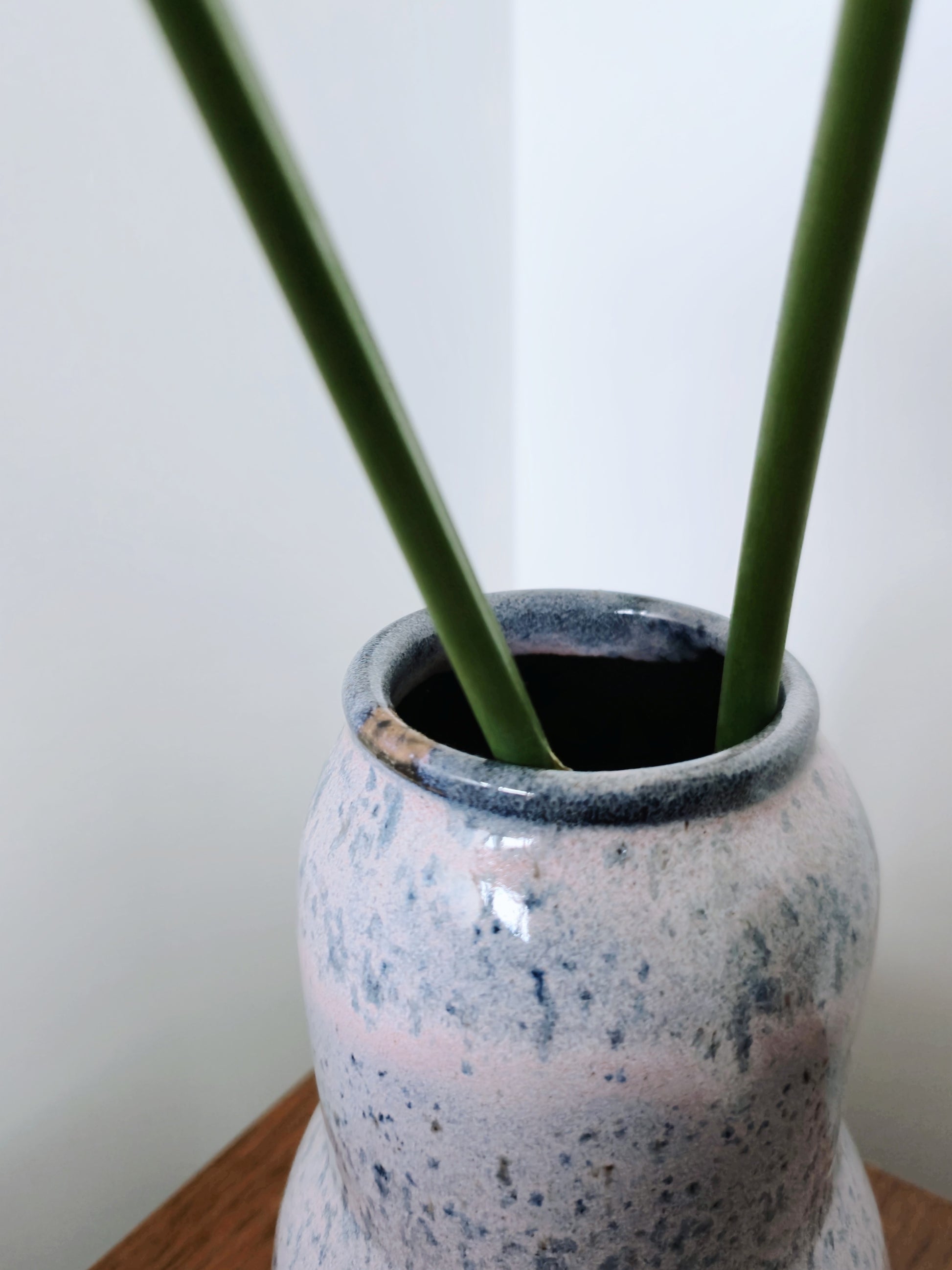 This stoneware vase glazed in Inkcloud is a playful take on a peanut, reflecting One Off Ceramics' curiosity for botany and the natural world.