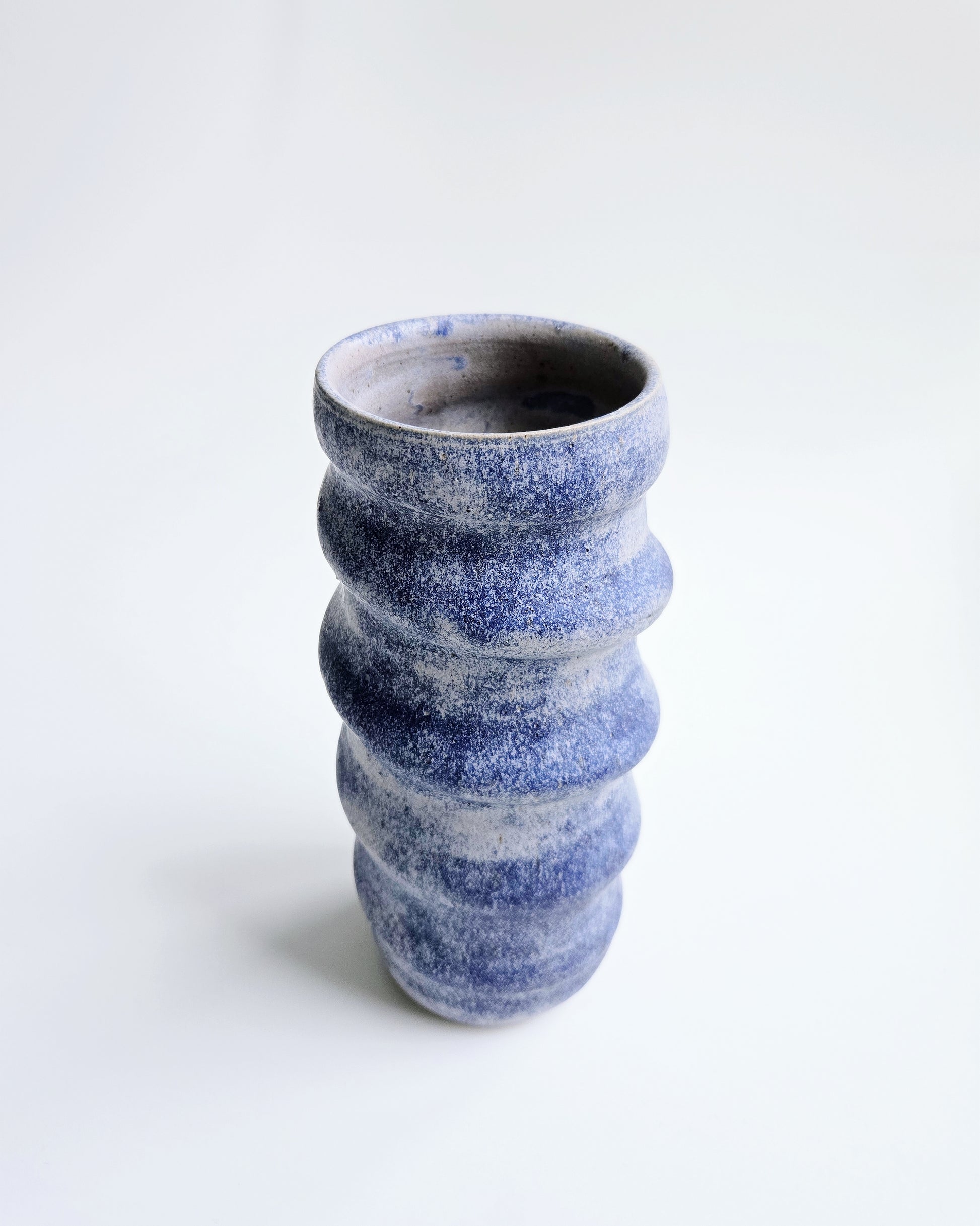 With one chance to get the form right, this swirly vase is a stunning result: downright hypnotizing on the pottery wheel but sculptural while not spinning. It conveys so much energy in stillness.
